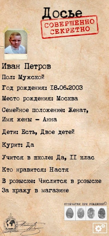Пранкуй друзей создавая на них досье с уникальной, смешной, жестокой информацией.