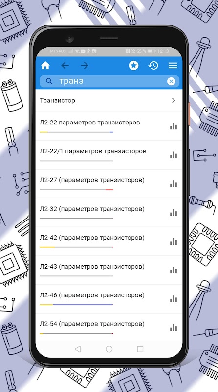 このアプリケーションでは、名前、名前の一部、またはコードで無線コンポーネントを検索できます。これにより、特定の位置にある貴金属の含有量をすばやく見つけることができます。必要に応じて、ディレクトリの位置をお気に入りに保存したり、無線コンポーネントのカードでナビゲーションの履歴を表示したりできます。