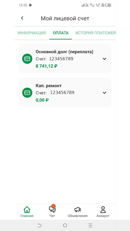 В списке начислений выделены начисления за капремонт.