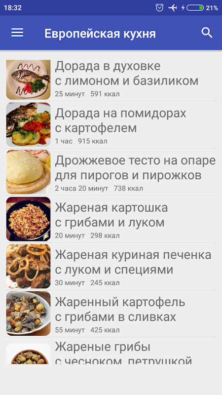 - Рецепты из различных продуктов: блюда из мяса, блюда из рыбы, блюда из тофу и теста (выпечка), рецепты из птицы и курицы, блюда из молочных продуктов