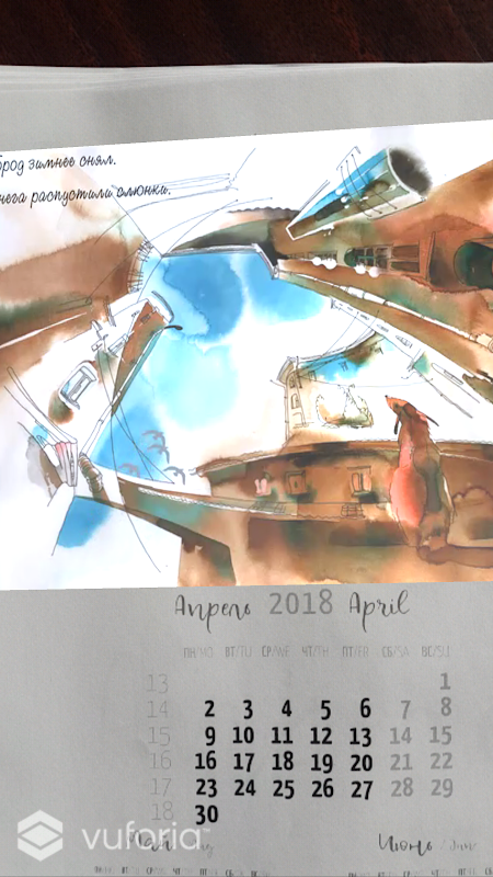 Мобильное приложение с дополненной реальностью «Живой календарь», разработанное специалистами «ГК Омега», позволяет взглянуть на страницы печатной версии календаря на 2018 год по-новому. Запустив приложение и направив видоискатель камеры мобильного устройства на живописные иллюстрации талантливых художников вы сможете увидеть как картины «оживают» на ваших глазах.
