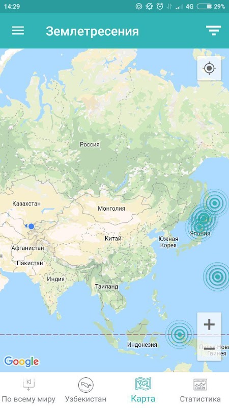 アプリケーション「地震の会計」は、地震が発生したことをユーザーに通知するように設計されています。地震に関する情報は地質学的な点に結び付けられて地図上に表示されます。データを迅速にフィルタリングするためには、ユーザーの居場所に関するデータが必要です。したがって、まず最初に、ユーザーは自分の周りの関連データのみを受け取ります。