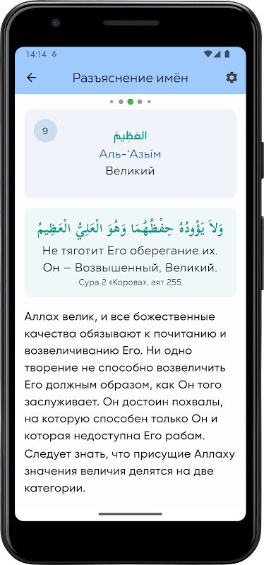 よく知られているイスラム教徒の説教者Sa'id ibn 'Ali al-Qahtani「コーランとスンナの光の中でのアッラーの美しい名前の解釈」の本は、神の名前と属性における信仰の原則、ならびにアッラーのまさにその意味