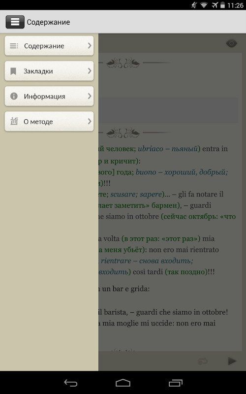 アプリケーションは、(元のテキストの簡素化せずに)適応現代イタリアのジョークの百、方法イリヤFranka®が含まれています。読み取りとイタリア語でジョークを聞いて、あなたは現代のイタリア語の回転数を話さcommonplacesやフレーズの多くで会う予定だ。
