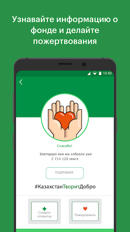#КазахстанТворитДобро - это приложение Общественного Благотворительного Фонда «Касиеттi жол», с помощью которого Вы можете помочь детям из малоимущих семей и домов ребенка! В приложении можно создать открытку с добрыми пожеланиями для детей и сделать пожертвование. Приложение позволяет Вам остаться анонимным, а также оказать помощь на любую сумму.