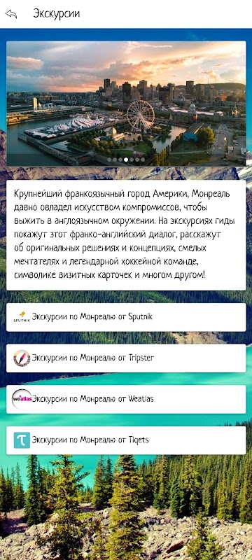 一人旅やカップル旅行でおもしろい遠足をしたいという状況もありますが、グループのガイド料金がかかるので高額です。このアプリケーションでは、共同ツアーの仲間の旅行者を見つけて、ツアーのコストを削減できます。アプリケーションの[旅行者]セクションで投稿を公開すると、半径10km以内にあるアプリケーションの他のユーザーに表示されます。そして、「ジオロケーション」アイコンをクリックすると、半径10km以内に他のそのようなオファーが表示されます。さらに、アプリケーションでは、カナダの都市との最初の知り合いを作り、観光スポットやビデオレビューを見て旅行する場所を選択することができます。また、アプリケーションには、カナダでサービスを提供している旅行代理店、旅行代理店、ホテルに関する情報があります。