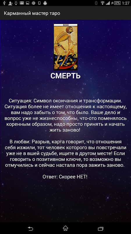 Простое приложение, которое помогает вам понять ситуация исходя из одной карты старших арканов ТАРО!
