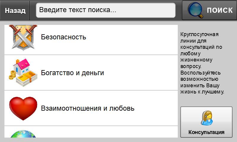 • 7 встроенных шаблонов на самые популярные темы: «Фен-шуй», «Взаимная любовь», «Активный образ жизни», «Супружество», «Я ем и худею», «Быстро богатею», «Мне сопутствует удача»;