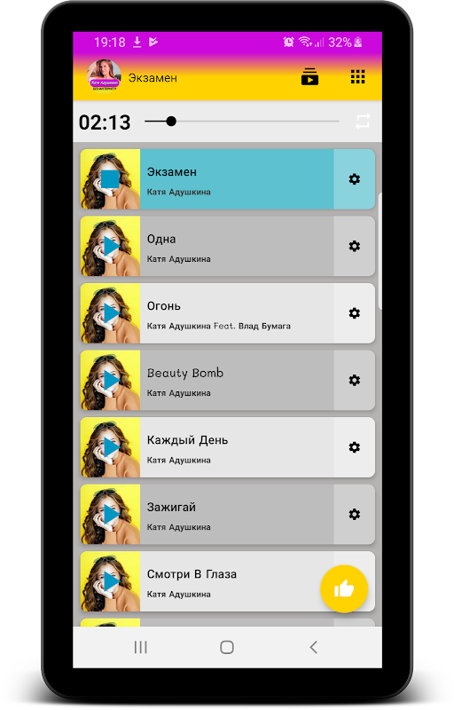 приложение "Катя Адушкина песни - Не Онлайн" содержит лучшие песни Katya Adushkina :