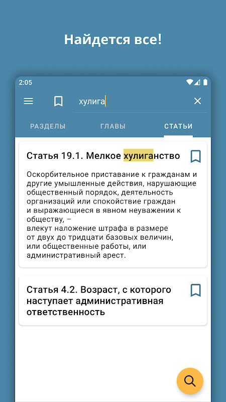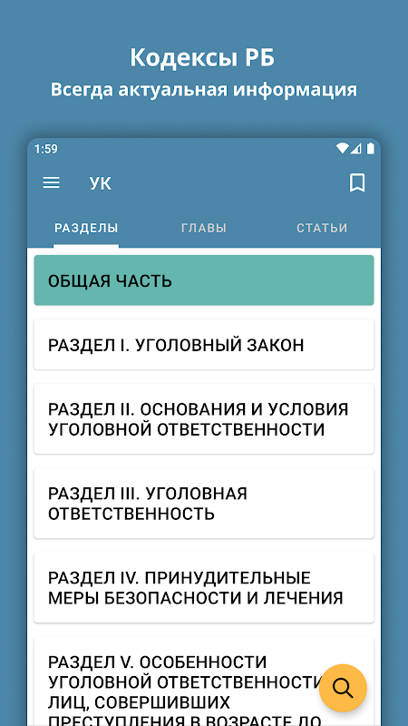 あなたが法律専門の従業員または学生であれば、分厚い印刷版のコードを持ち歩いたり、さまざまな Web サイトを使用したりする必要はありません。このアプリケーションには、セクション、章、記事とその内容ごとに便利な検索機能があります。選択した記事をお気に入りに追加する機能、簡単なナビゲーション、トピックを変更する機能があります。私たちの主な原則は情報の関連性です。そのため、インターネットにアクセスできる場合は、特定のコードの変更に気づき、その後更新される可能性があります。