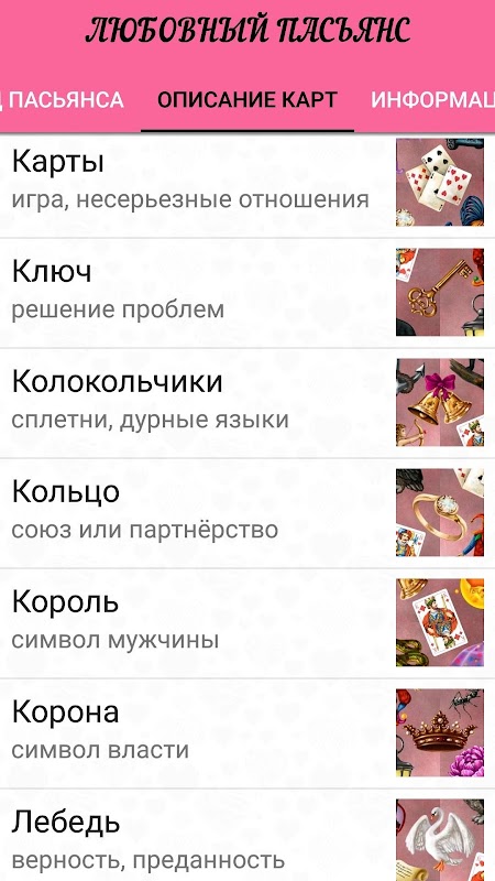 На этом пасьянсе мы рассматриваем любовные вопросы, вопросы взаимоотношений. Прежде всего, нужно сконцентрироваться и четко задать вопрос. Много вопросов сразу лучше не задавать.