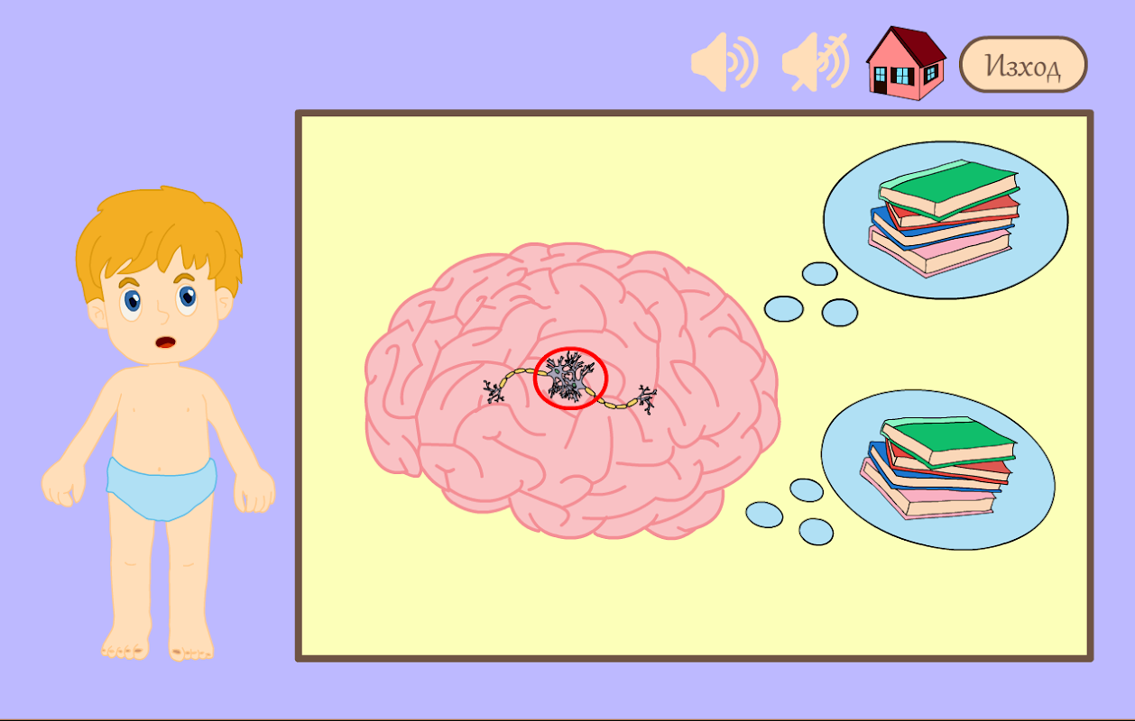 Приложението е подходящо за деца от 8 до 11 години. В него са разработени 5 урока, които включват 5-те основни органа в човешкото тяло: сърце, мозък, бели дробове, стомах и черва(тънко и дебело). Всеки от уроците е анимиран, за да може да разберете най-важните факти за всеки от органите максимално добре. Проектът включва и 3 игри, с които може да упражните запомненото до момента. В първата игра може да упражнявате паметта си, като се използват двойки карти със съответния орган и името му. Във втората игра трябва да се поставят органите на местата им в човешкото тяло. В третата игра ще се появяват храни, които трябва да се разпределят на две места: кошче за боклук, ако са вредни или кошница, ако са полезни. За фон звучи музика, която може да бъде спряна по всяко време. Също, над основното платно, върху което се появяват уроците и игрите, са поставени бутони, всеки от които води до различна функция: меню, изход, спиране и пускане на звука.