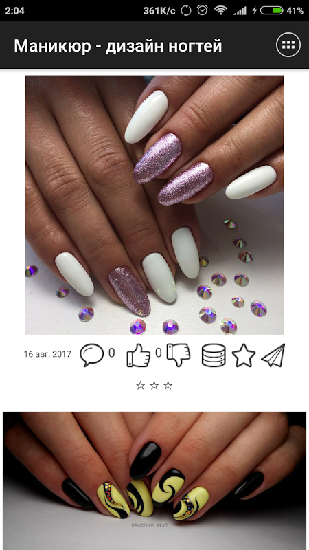 Градиент и кошачий глаз, китайская роспись и аэрография, стемпинг и акриловая лепка, инкрустация и французский маникюр, а так же остальные виды дизайнов ты сможешь посмотреть в этом приложении! Заходи и бери идеи, которые тебе понравится!