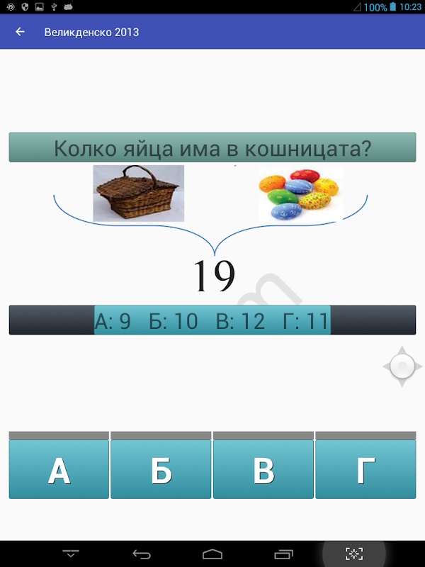 В текущата версия на приложението 1.0 , са подбрани задачи от Великденски математически състезания за първи клас.