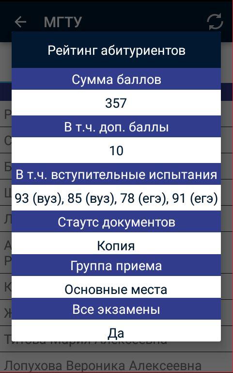 3. Просмотр списка поступающих и рейтинга абитуриентов.