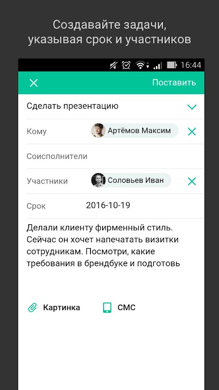 Используйте список сотрудников и список клиентов, чтобы посмотреть их контактную информацию или узнать о них что-то еще (емейл, должность, возраст, отдел и т.д.). Списком удобно пользоваться как адресной книгой: пишите смс, на почту или в скайп или звоните прямо из карточки сотрудника/клиента. Позвонить любому сотруднику и клиенту можно в два касания, и не нужно добавлять их в адресную книгу смартфона.