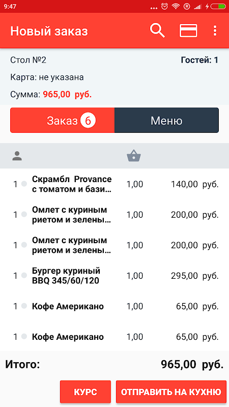 このアプリケーションを使用すると、部屋の周りのウェイターの動きを減らすことで、ゲストのサービスを大幅に加速することができます。また、ウェイターに料理の準備状況をすばやく取得できます(これらの自動化システムでクックの職場を使用する場合)。