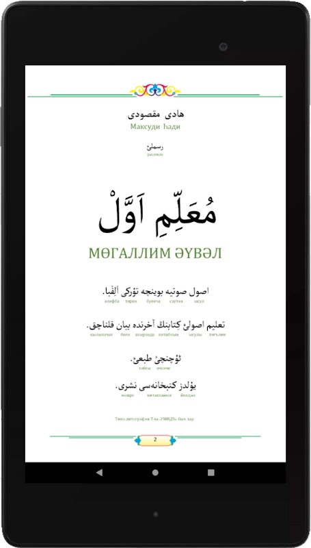 「最初の先生」。 A. Maksudiの後のアラビア語の「Ya "aimlә」のチュルク語(タタール語)アルファベット