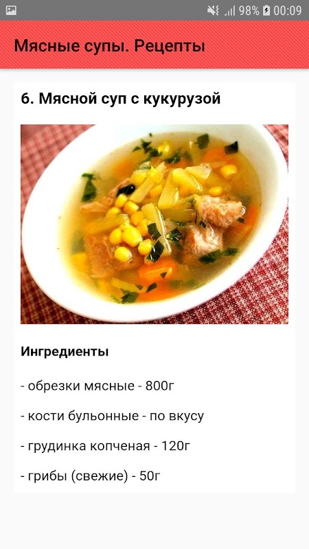 - Мясной суп с кукурузой