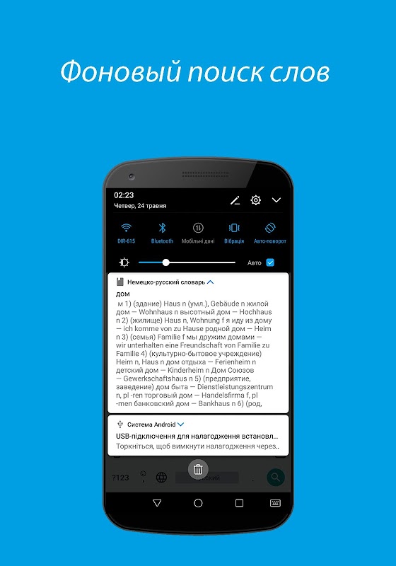 大きくて重い辞書を携帯するのにうんざりしていませんか?今、あなたが必要とするすべてはスマートフォンにあります!ドイツ語-ロシア語とロシア語-ドイツ語のオフライン辞書は、どこにいても、いつでもどこにいても、自宅でドイツ語を勉強、旅行、または勉強しています。辞書の最初の起動時に、データベースを含むアーカイブがロードされます。
