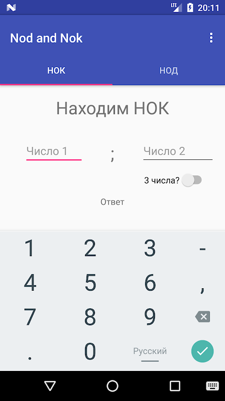 -Добавлена возможность вычислять НОК и НОД из трех чисел