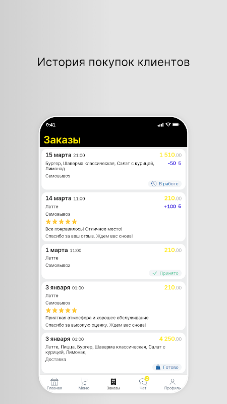 注文履歴: ワンタッチで以前の注文を簡単に表示して繰り返すことができます。これにより時間を節約し、お気に入りの料理をすぐに楽しむことができます。