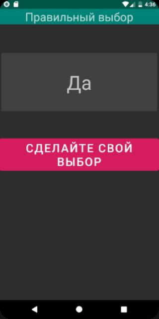 Помогает выбрать случайное решение. Если вы столкнулись с проблемой выбора, загрузите это приложение, и оно поможет вам выбрать случайное решение