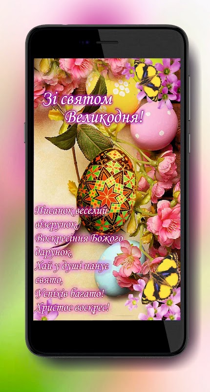 Привітання з Великодньою неділею - одна з найкращих тем персоналізації. Додаток Привітання з Великодньою неділею має ряд переваг - повна сумісність з 99% Android-пристроїв, не потрібно підключати до Інтернету, економічно використовувати акумулятор пристрою, він має дуже зручну і зрозумілу систему налаштувань.