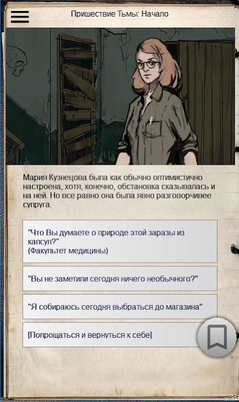 あなたの攻撃のそれぞれが、奇妙な病気の治療法を見つけることに成功に依存しますpostapokalipsisについてあなたテキストアドベンチャーをもたらす緊張と謎の雰囲気の中で身を浸し。