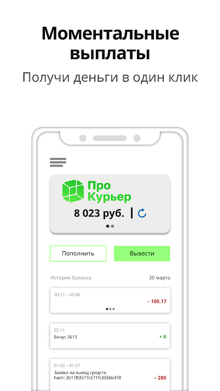 宅配業者アプリケーションへの素早い接続。手数料なしの週払い