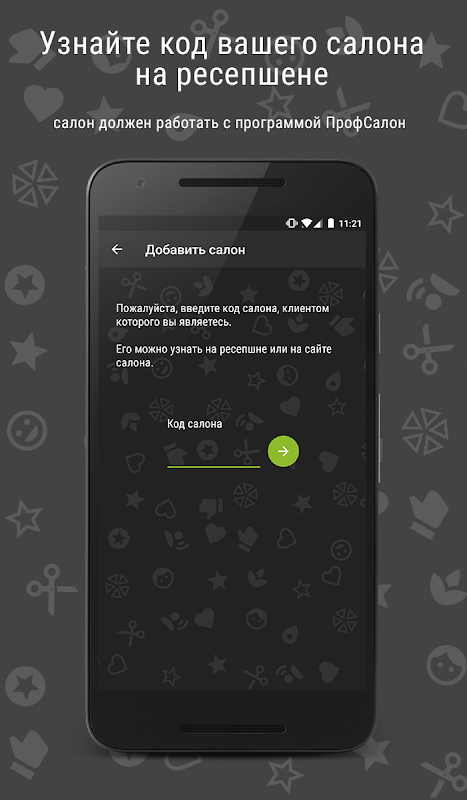 アプリケーションの使用を開始するには、受信サロンや美容室のウェブサイトでコードをチェックアプリの最初の画面に入力して、あなたはあなたのキャビンについての情報が表示されますし、オンライン登録することができるようになります。
