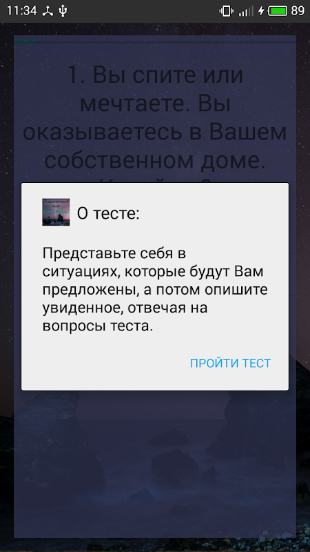 Приложение содержит вопросы с конкретными вариантами ответа, пройдя которые вы сразу получаете расшифровку своих результатов. Прохождение не занимает много времени.