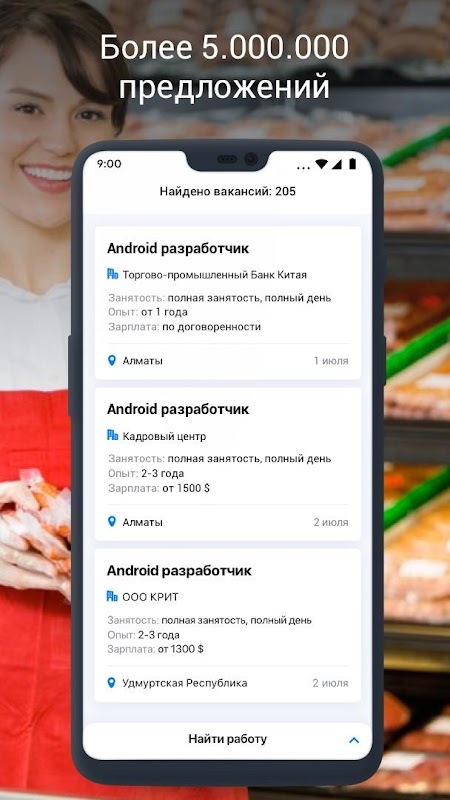 宅配便業者、売り手、レジ係、管理者、マネージャー、ドライバー、ウェイター、バーテンダー、バリスタ、料理人、ビルダーの仕事、その他多くの関連する最近の求人情報が常にアプリケーションにあります。