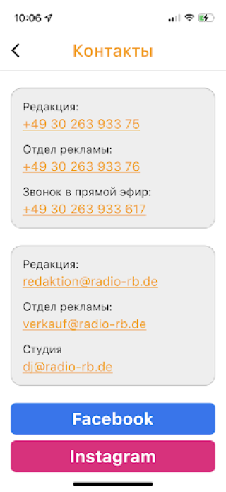 Radio Voice of Berlin - これらは、ロシア語を話すパフォーマーによる新しい黄金のヒット曲、1 時間ごとの天気予報と道路状況を含むニュース リリース、リスナーとのインタラクティブなコミュニケーション、エンターテイメント プログラム、コンテストです。