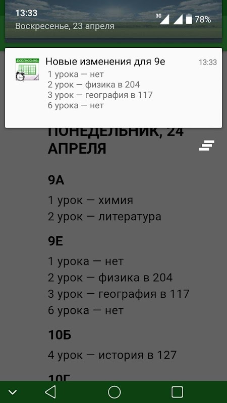 Также в программе есть возможность получать уведомления при изменении расписания для класса.