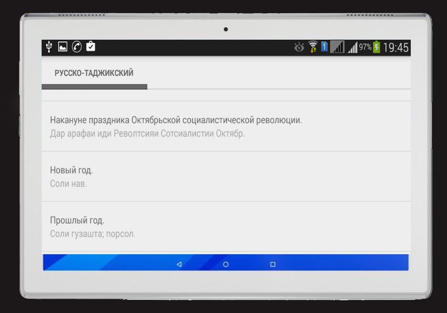 慣用句には40を超えるテーマと1000の表現が含まれています。ロシア語 - タジク語会話集は、主にロシア語とタジク語の日常会話トピックに分かれています。このロシア語 - タジク語慣用句ではロシア語とタジク語の両方の主なフレーズとフレーズを選択しました。