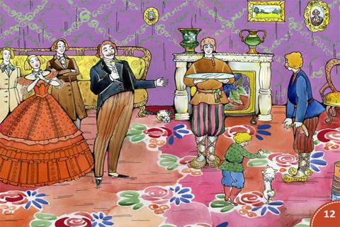 На первый взгляд кажется, что приложение похоже на обычную книгу — но коснитесь странички и окажется, что книжка живая и волшебная. Страницы переворачиваются, герои сказки разговаривают!