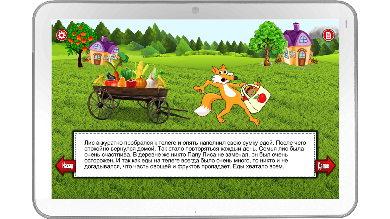 Вы можете нажимать на персонажи, отключать и включать текст для чтения, а так же включить опцию аудиосказка и прослушать историю о приключениях папы Лиса. Надеемся вы поддержите бабушку Шошо добрыми комментариями и тогда, мы запустим целую серию приложений " Сказки для детей от бабушки Шошо".