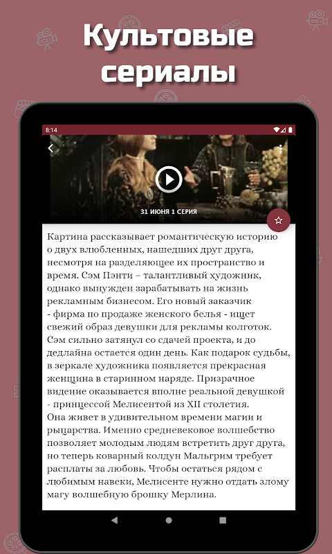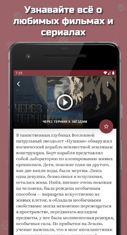 アプリケーション「ソビエト小説」では、あなたはオンラインでソビエト映画を鑑賞するか、それに説明を読むことができます。