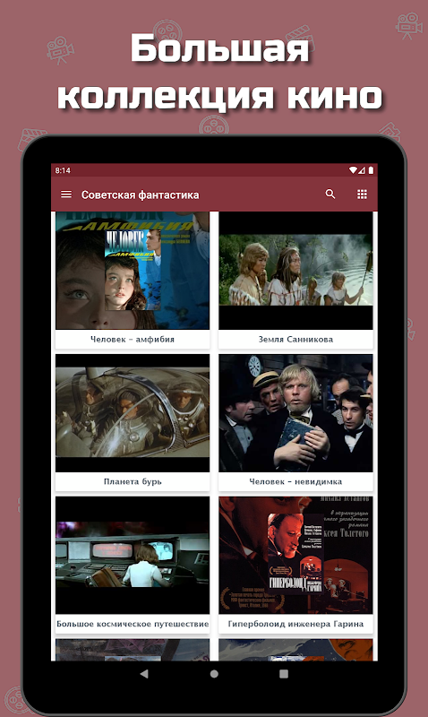 アプリケーションは、ジャンルソビエト小説のソビエト映画を紹介します。ソビエト時代には、フィクションのジャンルは多くの人々にとって興味深かった - 確かにあなたは宇宙のテーマがいかに私たちの国の人口にとって興味深かったか知っている。ソ連の映画館は私達に監督 - 夢想家の作品を修正する機会を与えました。