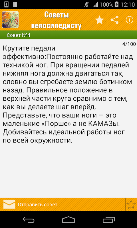 Скачайте приложение «100 советов велосипедисту» - и ваша жизнь встанет на нужные колеса!