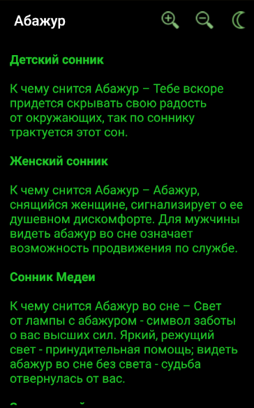 В соннике собрано огромное количество толкований снов.Огромное собрание толкований сновидений по 100 сонникам. Быстрый поиск толкования и выбор толкования по отдельному соннику. Приложение поддерживает режим "ночного чтения". Есть возможность найти сон по названию.
