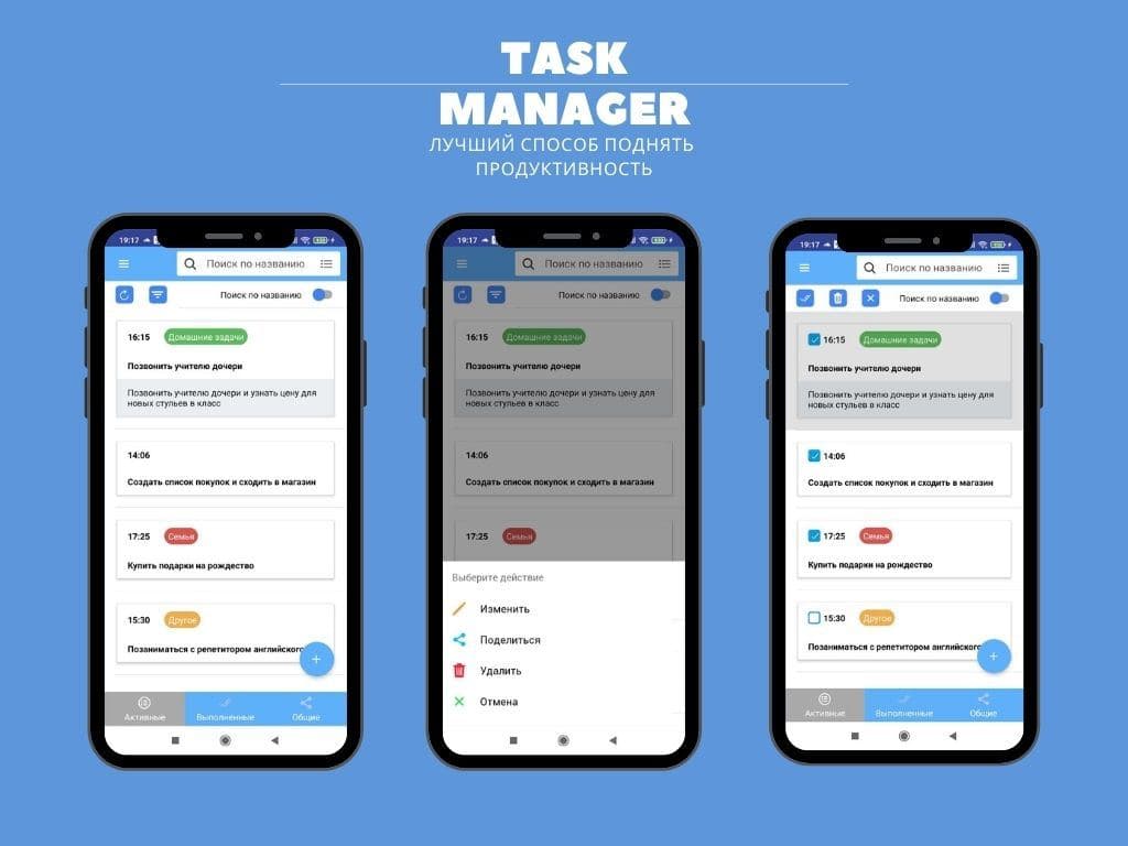 Удобный и интуитивно понятный интерфейс Task Manager, поможет вам не только сохранить все задачи, но и повысит вашу продуктивность.