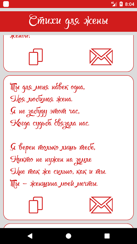 愛について付録詩は、毎日美しい、ユニークな詩を自分の愛する人を喜ばせるためにあなたを助けることができます。データベースは参加せず、毎日詩を更新し、千以上の合計現在の数です。それぞれの詩は、あなたはすぐに私のスマートフォンに保存したり、任意の便利な方法であなたの愛する人ワンタッチを送ることができます - メール、ソーシャルネットワーク、インスタントメッセンジャーで。