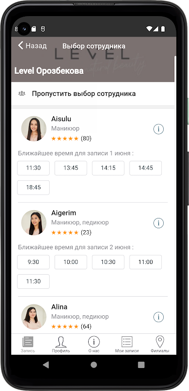 手頃な価格で幅広いサービスを提供する大規模でスタイリッシュな美容院です。 Level Studioでは、時間を無駄にすることなく、1日または同時に複数の異なる高品質のサービスを利用できます!ネイルサービス、まつげエクステ、まつげと眉毛のラミネーション、ブラウンバー、化粧、永久化粧。私たちのサロンでは、きっとあなたのマスターを見つけ、サービスの質に満足するでしょう。