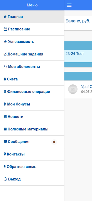 一般に、このアプリケーションは、ウェルカム スタジオ サンクトペテルブルクでの教育プロセスを組織化するプロセスを促進するように設計されており、生徒と保護者が組織的な問題ではなく学習に直接時間と労力を費やすことができます。