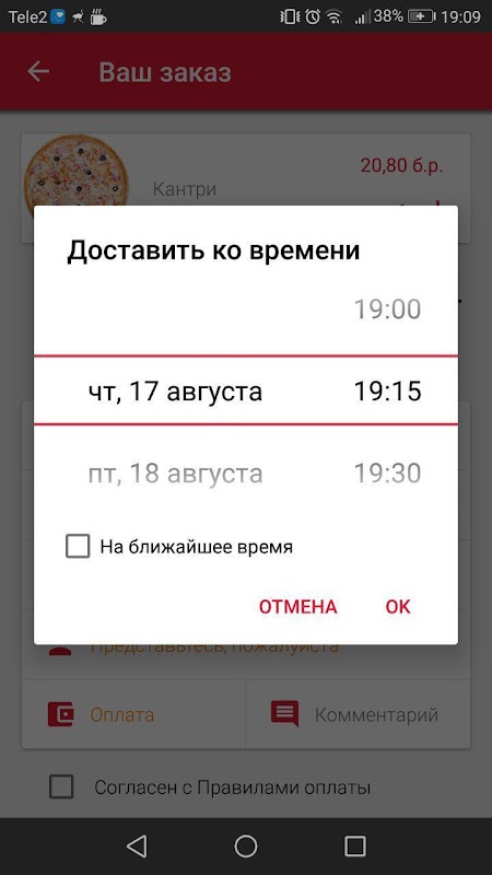 アプリを通じて現金またはカード:お支払方法を選択します。支払いを取ると「注文」ボタンをクリックしてください。