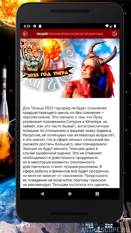 モバイルアプリケーションの機能には、現在の期間の予報の視聴覚ビューを提供するビデオホロスコープが含まれています。また、アプリケーションをモバイルにダウンロードすると、各おうし座には、毎日の星占いウィジェットや、デバイスのメイン画面にスクリーンセーバーであるカラフルな壁紙をインストールする機会があります。人生の道にあなたを連れて行くおうし座のイメージは、幸運と幸運を引き付ける一種のお守りになります。