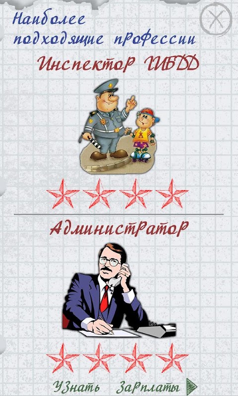 По результатам ответов выбираются 2 из 72 профессий, которые больше всего соответствуют Вашим ответам.