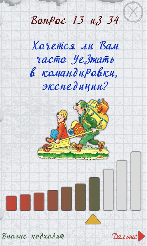 В тесте 34 вопроса, на которые необходимо ответить баллом от 1 до 10: